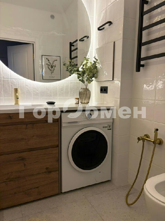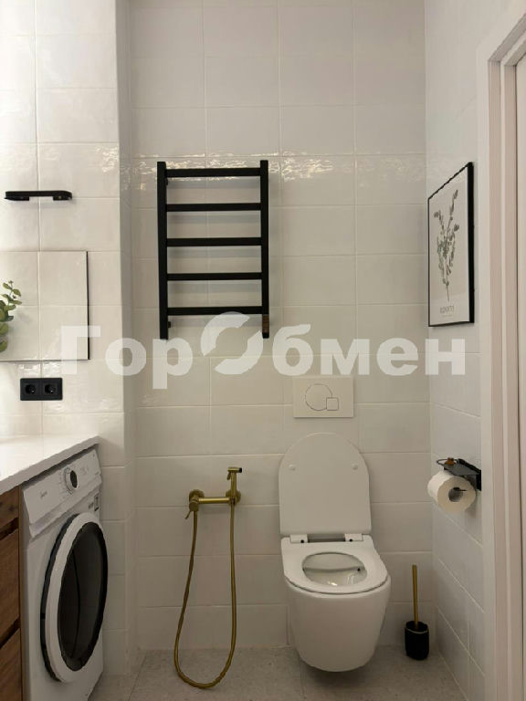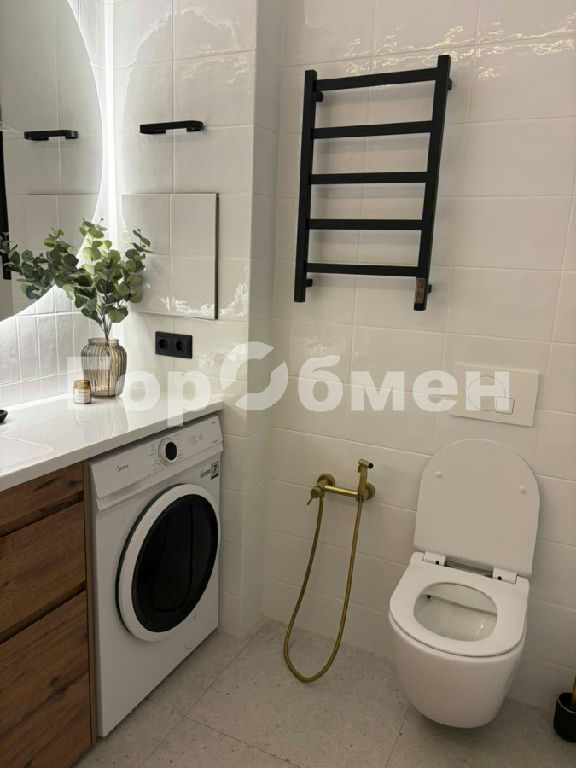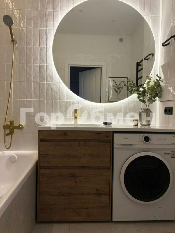 САНУЗЕЛ: общей площадью-4,1кв м. Установлена столешница с раковиной с встроенными ящиками для хранения и стиральной машинкой. Установлен гигиенический душ. Полотенцесушитель настенный. Акриловая ванна и унитаз. Большое зеркало с подсветкой.